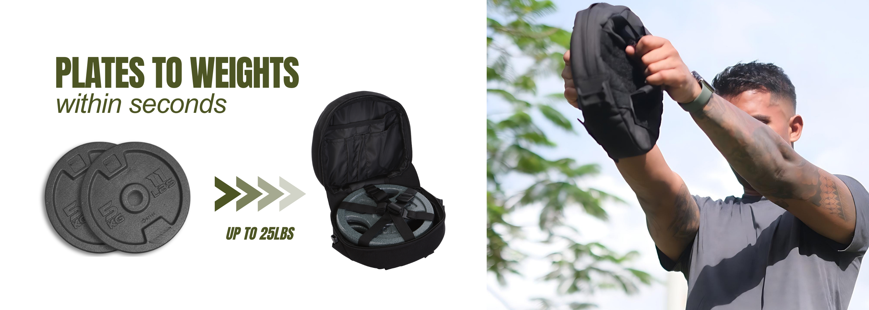 Plate Pouch – Load barbell plates to transform it into a 30 lb dumbbell or kettlebell