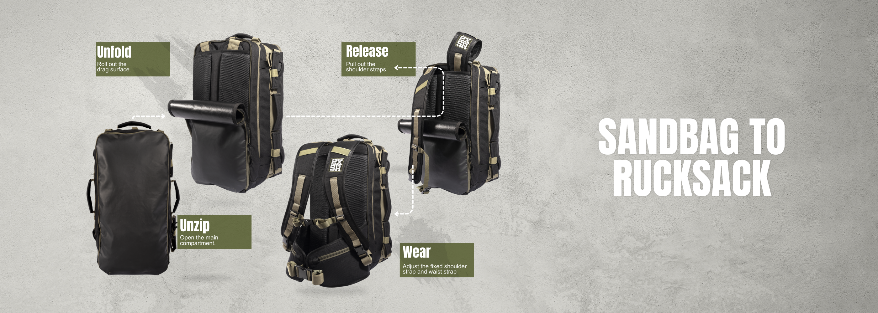 2. If you need weight included, the SandRuck's available with either 2 x 30LB, 40LB, or 60LB Drag Bags is the right choice for you.