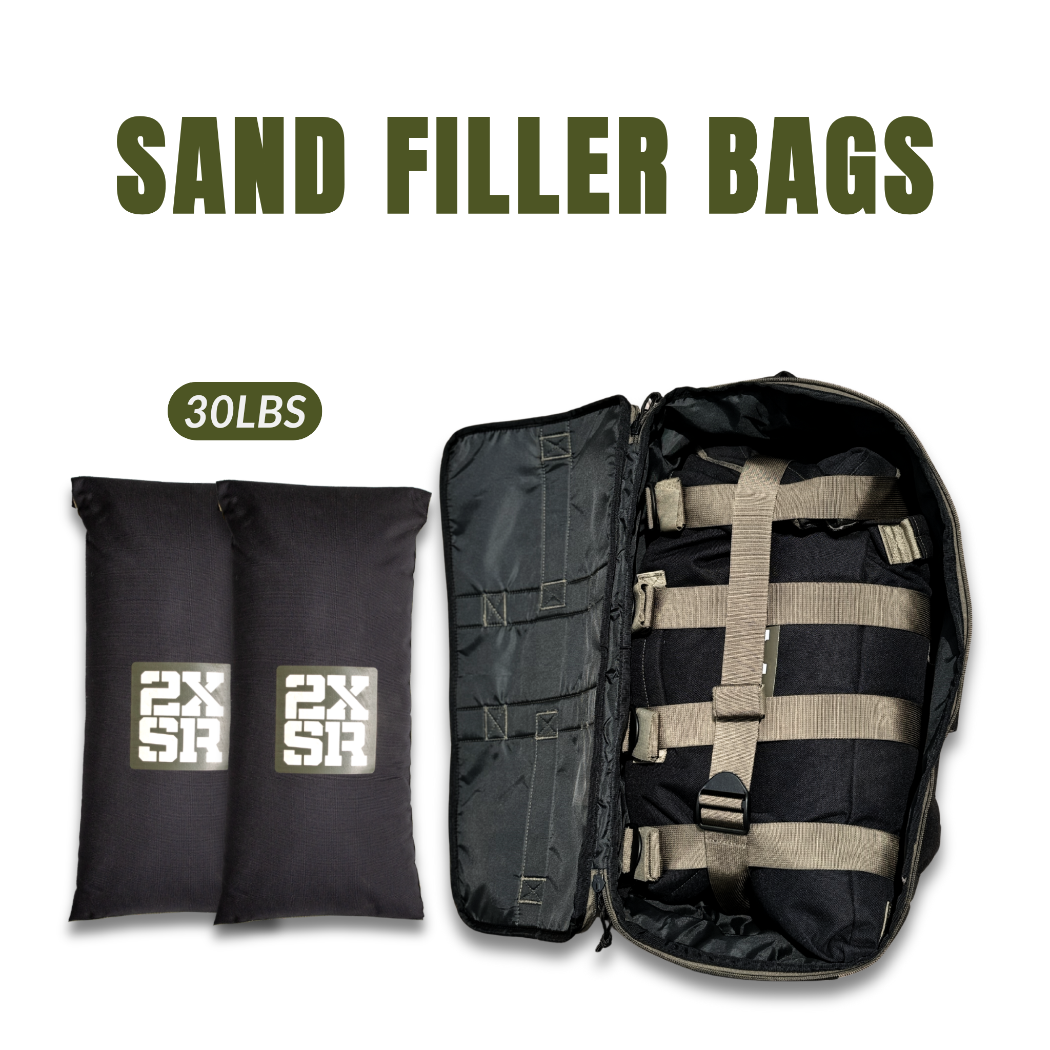 Two 30LB Sand Filler Bags – Adjustable, durable filler bags to customize your weight load for rucks, drags, and lifts.