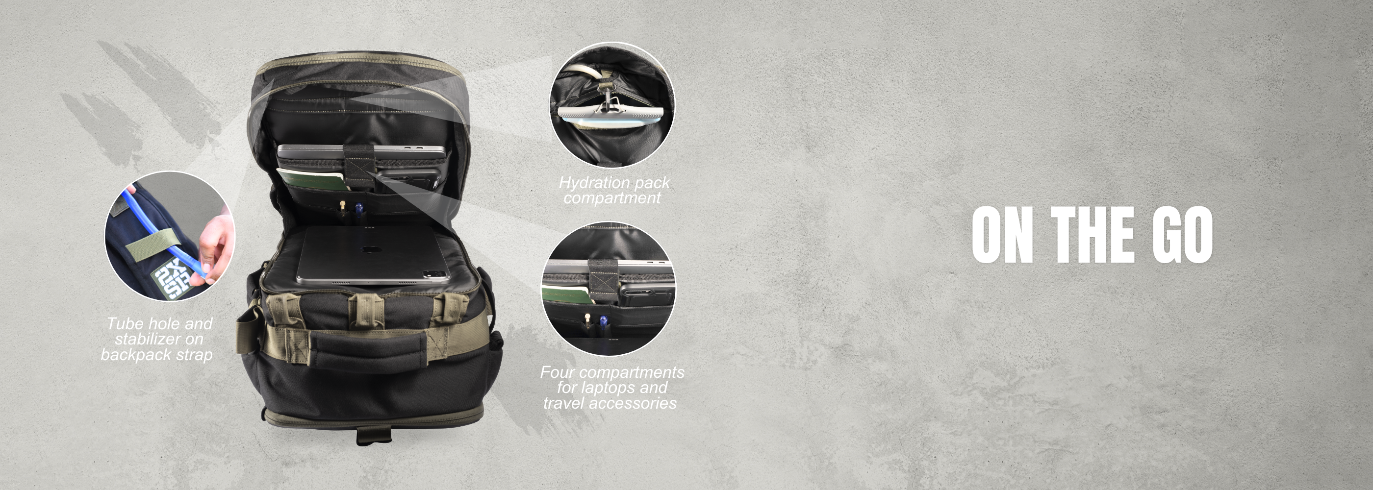 - Dedicated hydration bladder compartment (up to 2.5L)