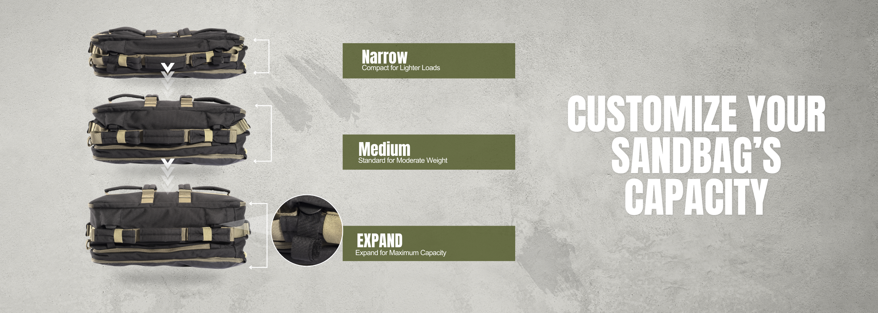 • Easily adjust weight without needing to buy multiple sandbags of different sizes.
