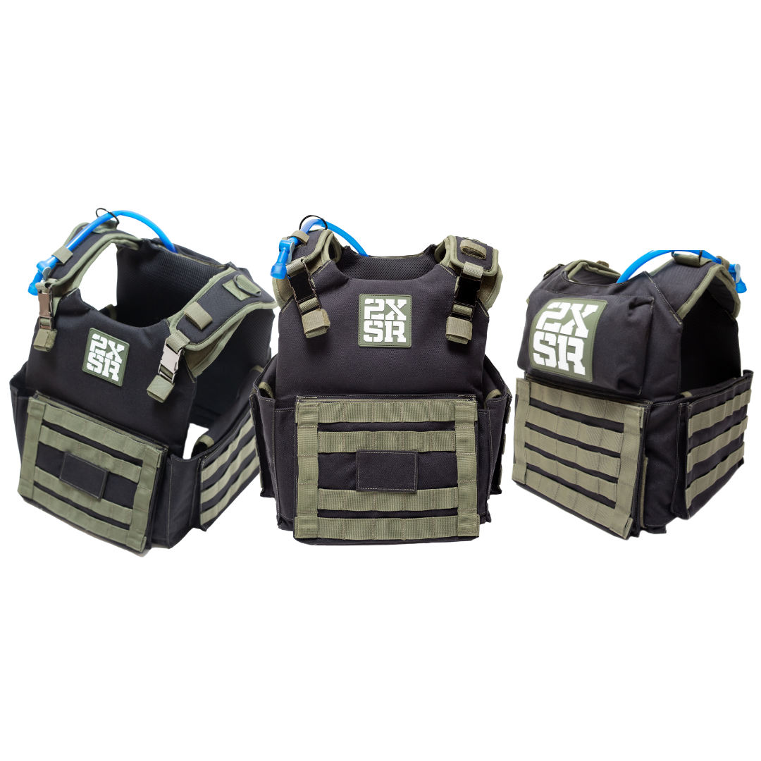 Lift, run, hike, climb and crawl while staying hydrated with the FIRST weighted vest and a removable hydration pack.