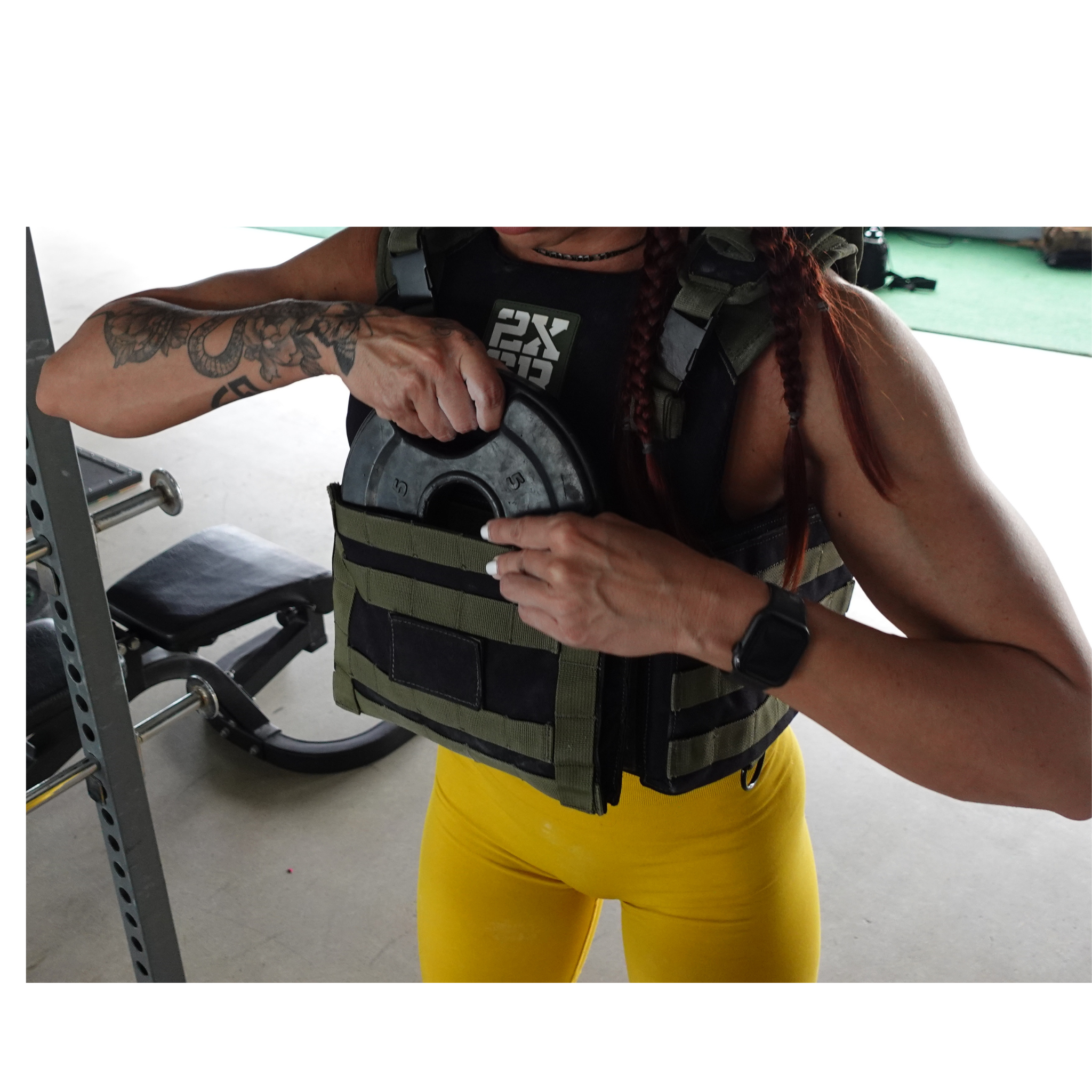 Intermediate - advanced weight lifting: Two weight metal plate carrier underneath the front and back panel (not included).